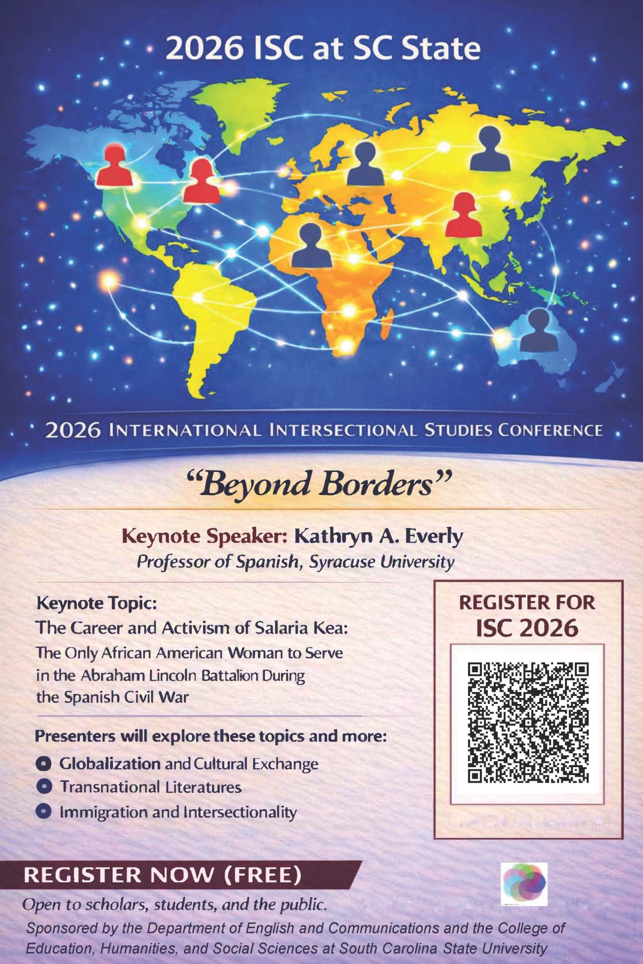 The ISC at SC State fosters scholarship and inquiry into how intersecting identities shape experiences of power, resistance, belonging, and transformation. ISC welcomes work that pushes disciplinary and conceptual boundaries to better understand how social, cultural, political, and embodied borders—literal and figurative—structure our worlds, limit possibilities, and open new paths.